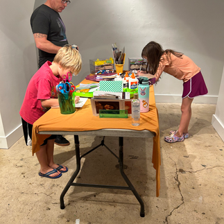 Trash Bash involved five creative teams competing to build site-specific installation sculptures working with various reused materials provided by Reconsidered Goods. The teams were randomly selected and consisted of a mix of students, faculty, and community members. Teams met for the first time on opening night and worked on their collaborative artwork under a time constraint of 75 minutes while over 200 spectators cheered them on. Each team was assigned to a specific area in the gallery and received a kit of repurposed materials, a list of challenges, and the opportunity to select “mystery materials” they could decide to incorporate. A duo of “Maker Mentors” were present to supply stabilizing hardware and construction assistance if needed. A panel of judges selected the winning team that received a large-scale Reconsidered Goods-designed assemblage trophy. However, all the remaining teams received a trophy and RG prizes. The artwork remained on display at Greensboro Project Space through Saturday, October 14th.